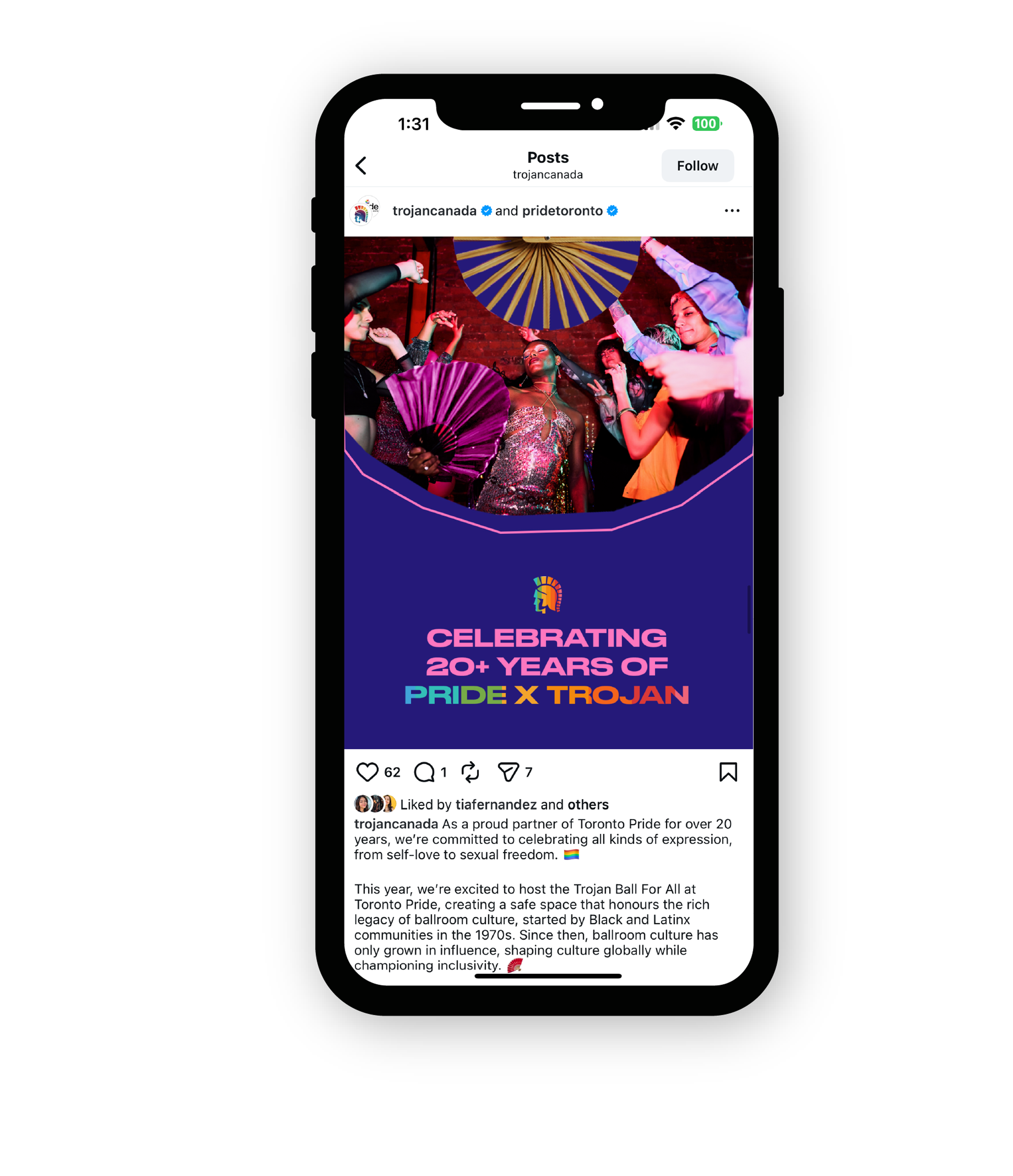 As the Production Artist on the Trojan × Toronto Pride campaign, I supported the execution of social and print assets celebrating over 20 years of Pride partnership. I worked closely with the Art Director, Copywriter, and Motion Designer to bring the creative vision to life, ensuring brand consistency, technical accuracy, and platform-ready delivery across formats. The work spanned static, motion, and experiential touchpoints, translating bold Pride visuals into polished, production-ready assets.
